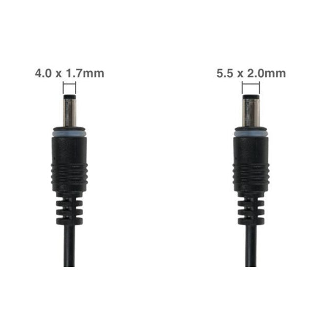 Incluye soporte y 2 enchufes de distinta medida 5,5*2,0mm o 4,0*1,7mm para elegir según necesidad.